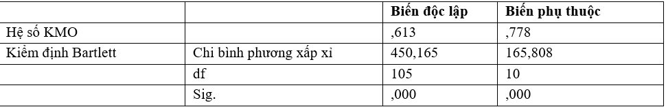 Kiểm định hệ số KMO và Bartlett