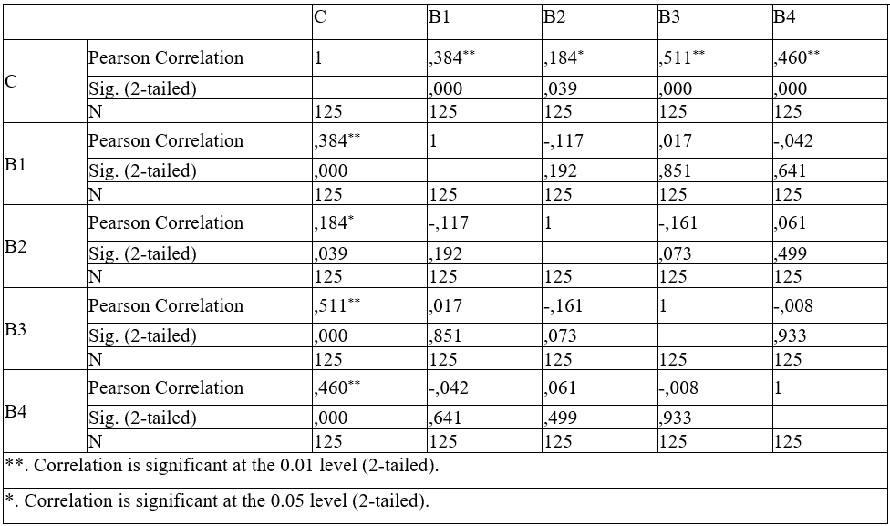 Bảng 1 cho thấy, hệ số Cronbach's Alpha tổng thể của 4 nhân tố độc lập và một nhân tố phụ thuộc đều > 0,6; Hệ số tương quan biến tổng của tất cả các biến quan sát > 0,3. Do đó, thang đo đạt yêu cầu, có chất lượng tốt và được đưa vào mô hình phân tích ở các bước tiếp theo.