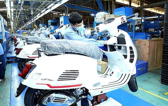 | Công nhân làm việc tại Công ty Piaggio Việt Nam trong KCN Bình Xuyên, tỉnh Vĩnh Phúc |