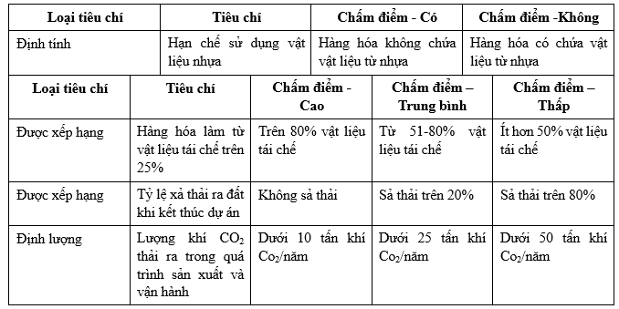 Bảng 2: Cách thức đo lường tiêu chí bền vững về môi trường của hàng hóa và dịch vụ