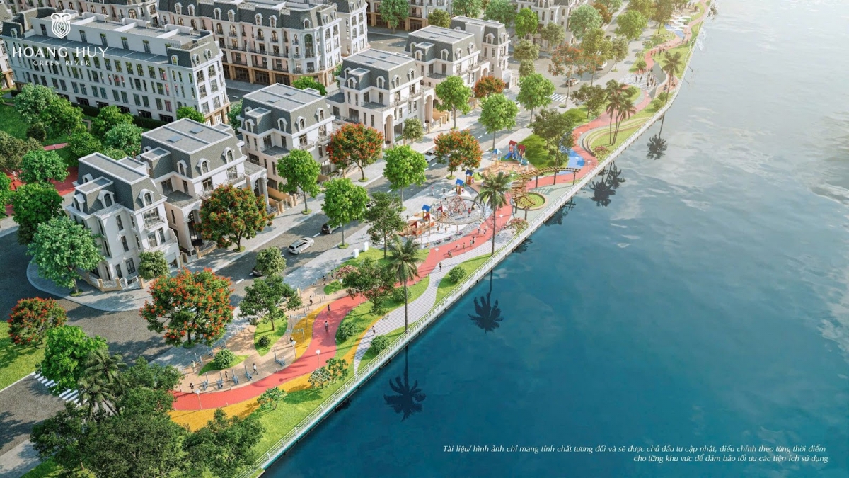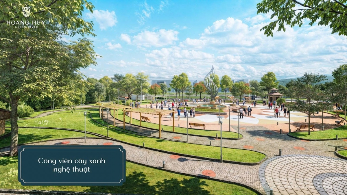 Điểm đặc biệt của Hoàng Huy Green River là sự chú trọng đến yếu tố xanh. Dự án dành một phần lớn diện tích cho công viên cây xanh, hồ điều hòa và các khu vực sinh hoạt cộng đồng. Công viên trung tâm đóng vai trò như “lá phổi xanh” của khu đô thị, giúp cải thiện chất lượng không khí và mang đến môi trường sống trong lành. Các đường dạo bộ ven kênh và khu vườn hoa được bố trí khéo léo, tạo nên không gian lý tưởng để cư dân thư giãn và tận hưởng cuộc sống.
