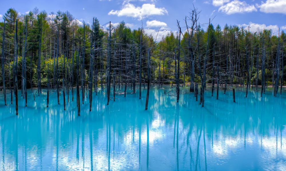 Nếu bạn sở hữu chiếc Macbook vào năm 2012 khi hệ điều hành OS X Mountain Lion mới xuất hiện, rất có thể hình nền của nó là hồ Blue. Hồ nước nhân tạo này ở Biei có màu xanh trong vắt đáng ngạc nhiên và những hàng liễu quyến rũ soi bóng trên mặt hồ làm nơi đây trở thành một kì quan.