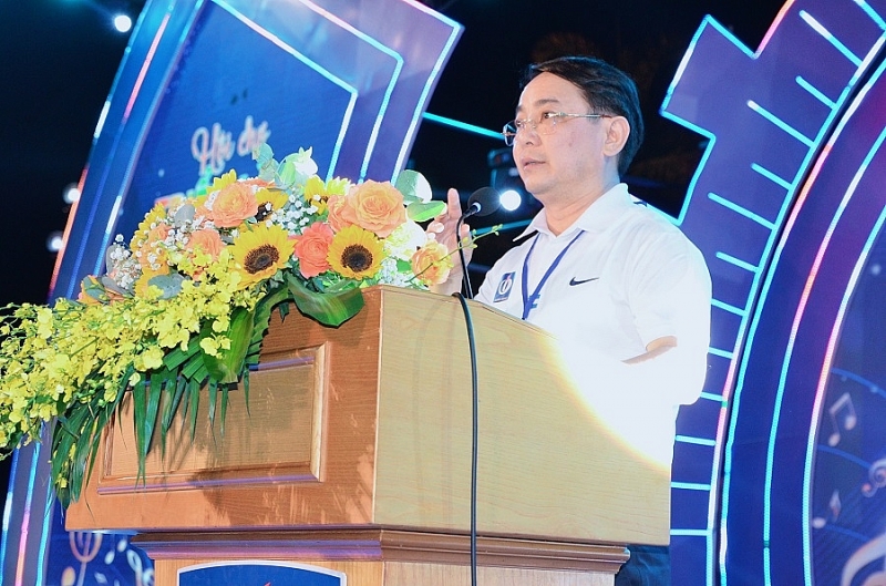| Ông Hà Hoàng Việt Phương, Khối phó Khối thi đua KCN, KKT, KCNC các tỉnh Tây Nguyên và Duyên hải miền Trung năm 2023, Trưởng Ban Quản lý KKT Dung Quất và các KCN Quảng Ngãi phát biểu khai mạc Chương trình nghệ thuật “Nối vòng tay lớn - chia sẻ yêu thương” |