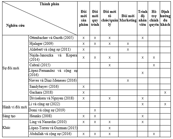Tổng quan các nghiên cứu trước đây cho thấy những khoảng trống đáng kể trong việc nghiên cứu về đổi mới trong bối cảnh lựa chọn điểm đến du lịch. Hầu hết các nghiên cứu tập trung vào đổi mới ở góc độ định tính hoặc mô tả, thiếu các kỹ thuật phân tích nâng cao như phân tích nhân tố khẳng định (CFA) và mô hình phương trình cấu trúc (SEM) để khám phá các mối quan hệ phức tạp giữa các yếu tố như hành vi đổi mới, sáng tạo và ý định lựa chọn điểm đến của du khách. Các nghiên cứu thường quan sát đổi mới từ phía doanh nghiệp thông qua đổi mới sản phẩm, quy trình và tổ chức/quản lý. Tuy nhiên, rất ít nghiên cứu kết nối các nỗ lực đổi mới này với ý định lựa chọn điểm đến của du khách một cách định lượng. Ngoài ra, tài liệu cũng cho thấy sự đa dạng của các hình thức đổi mới ở cấp độ du lịch, nhấn mạnh vai trò quan trọng của nó trong việc thu hút khách du lịch và đảm bảo hoạt động hiệu quả. Mặc dù có nhiều tranh luận về tác động trực tiếp của đổi mới đến hiệu quả hoạt động của doanh nghiệp, mối quan hệ giữa đổi mới, hình ảnh điểm đến và ý định lựa chọn của du khách vẫn là một lĩnh vực mới nổi, đòi hỏi phải có nghiên cứu thực nghiệm sâu hơn, đặc biệt trong bối cảnh tỉnh Bình Thuận. Kết quả tổng quan tài liệu được trình bày trong Bảng 1.