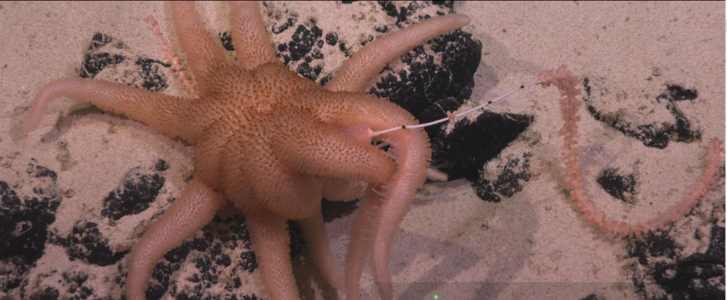 Nhóm nghiên cứu cũng chụp ảnh một ngôi sao biển dài 30cm săn mồi trên san hô tre - một hành vi chưa từng thấy trước đây.