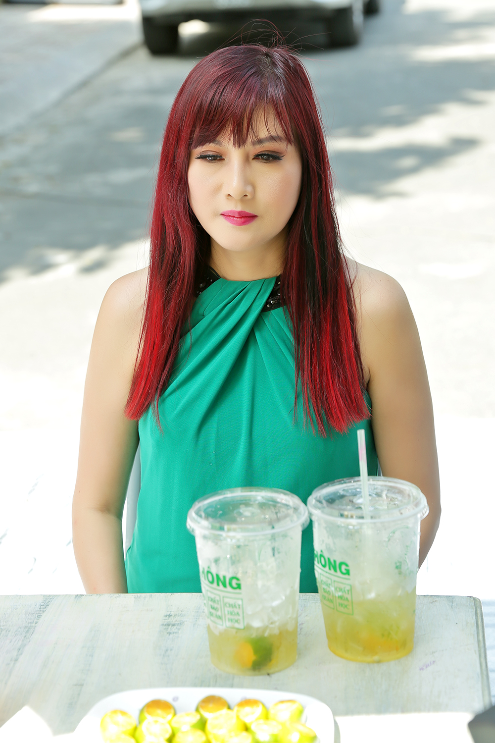 Có vẻ trà tắc là món khoái khẩu của Hiền Mai. Cô uống một hơi hết ly trà tắc Bin Ben.