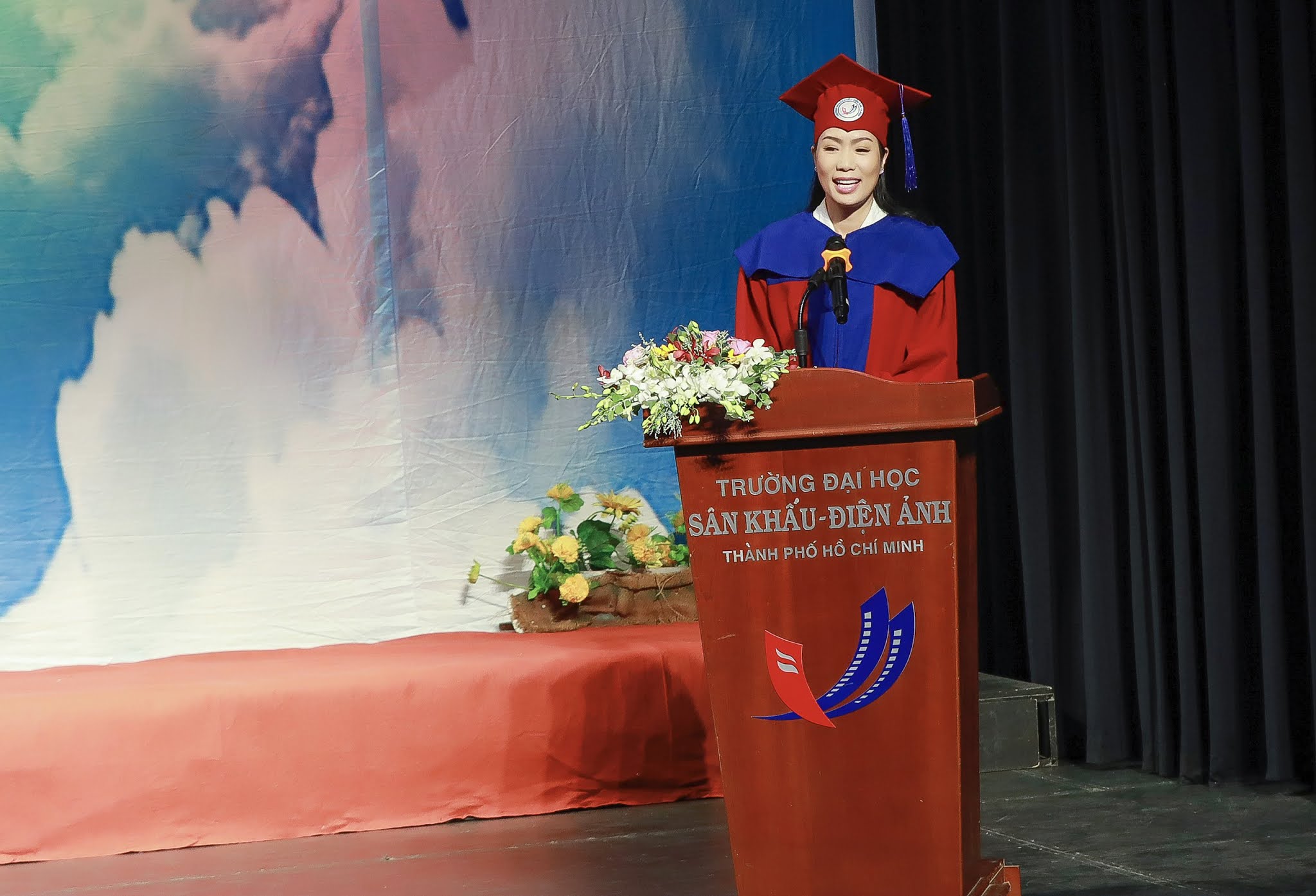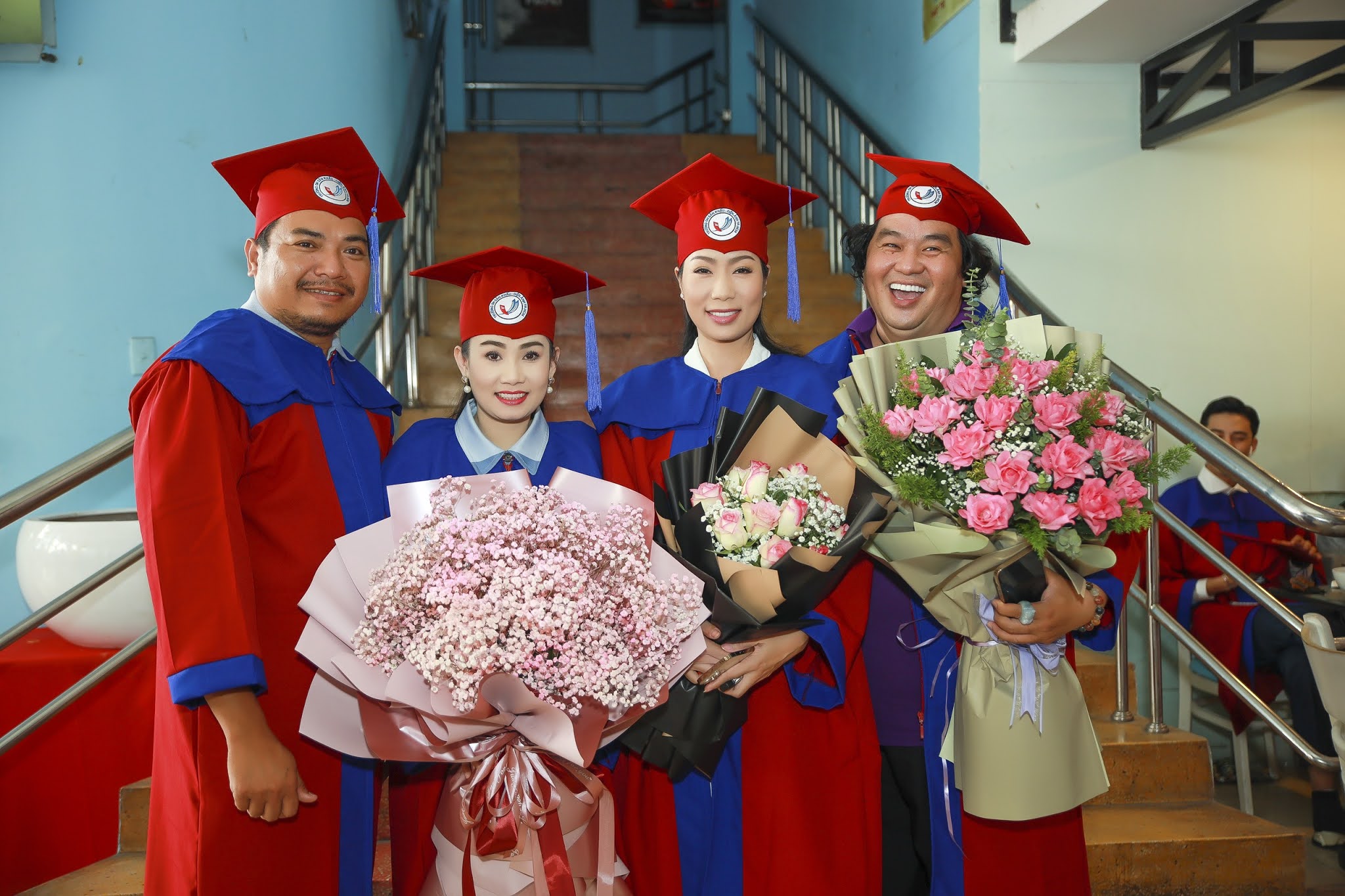NSƯT Trịnh Kim Chi chia sẻ: "Sau 4 năm học, Chi cảm nhận được sự chỉ dạy tận tình từ các thầy cô. Cảm ơn mọi người, đặc biệt là gia đình và ông xã đã ủng hộ và đồng hành cùng Chi suốt thời gian qua để có thể xuất sắc hoàn thành khóa học mà Chi đã mong muốn từ rất lâu".