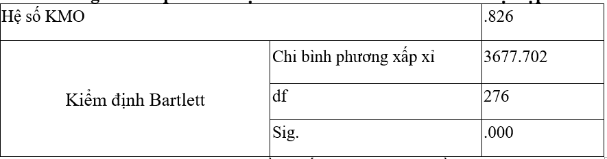 Bảng 1: Kết quả kiểm định KMO và Bartlett các biến độc lập
