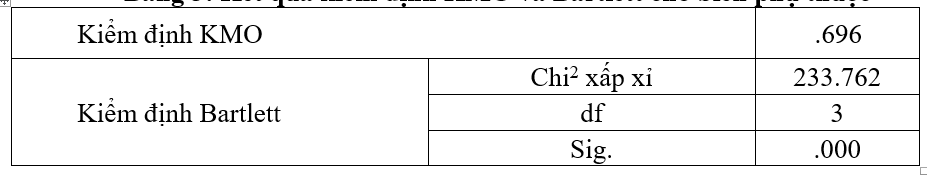 Bảng 3: Kết quả kiểm định KMO và Bartlett cho biến phụ thuộc