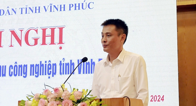 | Ông Nguyễn Anh Đệ, Phó Tổng Giám đốc Công ty cổ phần Phát triển hạ tầng Vĩnh Phúc phát biểu tại Hội nghị “Phát triển bền vững khu công nghiệp tỉnh Vĩnh Phúc” |